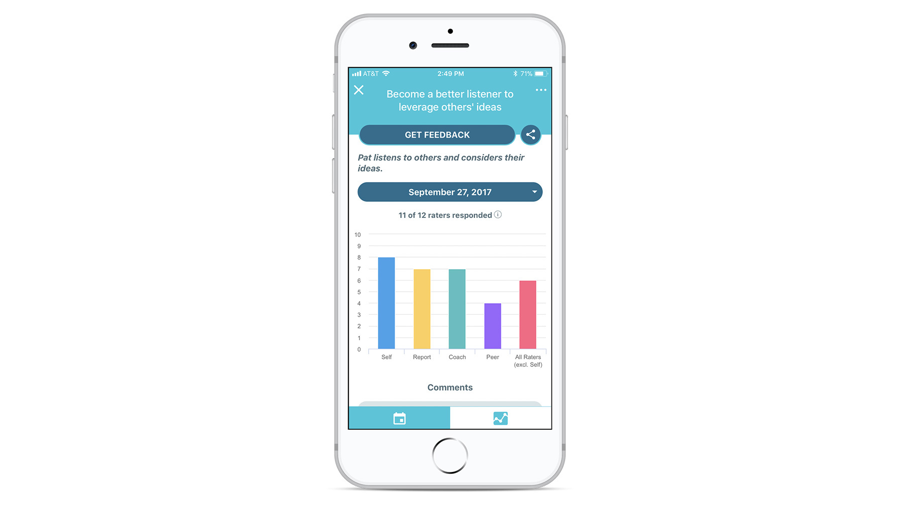 - With a touch of a button, the Tracker allows the exec to collect feedback from managers and colleagues, and charts the leader’s progress against his or her coaching goals. (Raters don’t have to have the app and the process takes seconds.)